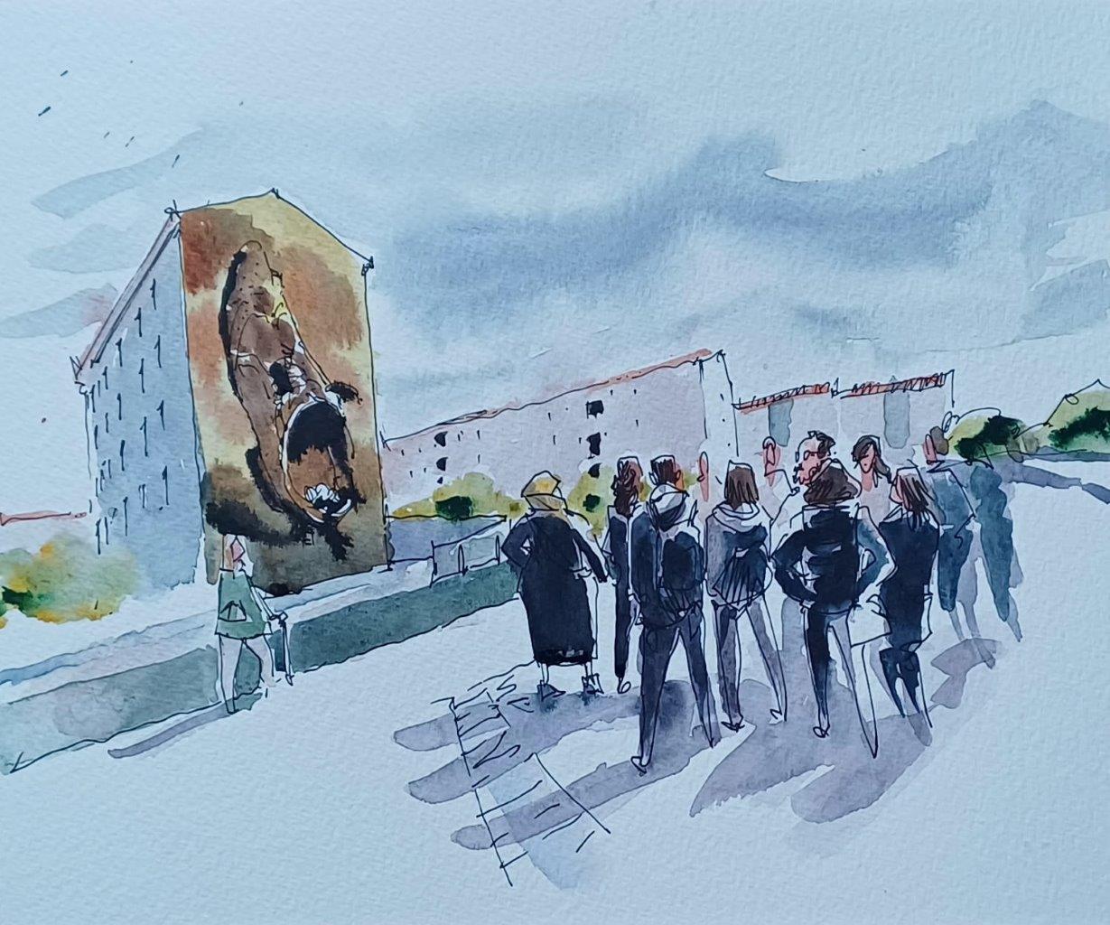 As ilustrações, da autoria de Pedro Loureiro, retratam diferentes momentos e dinâmicas ao longo da visita e constituem um registo visual do trabalho de proximidade desenvolvido pela Gebalis junto das comunidades.